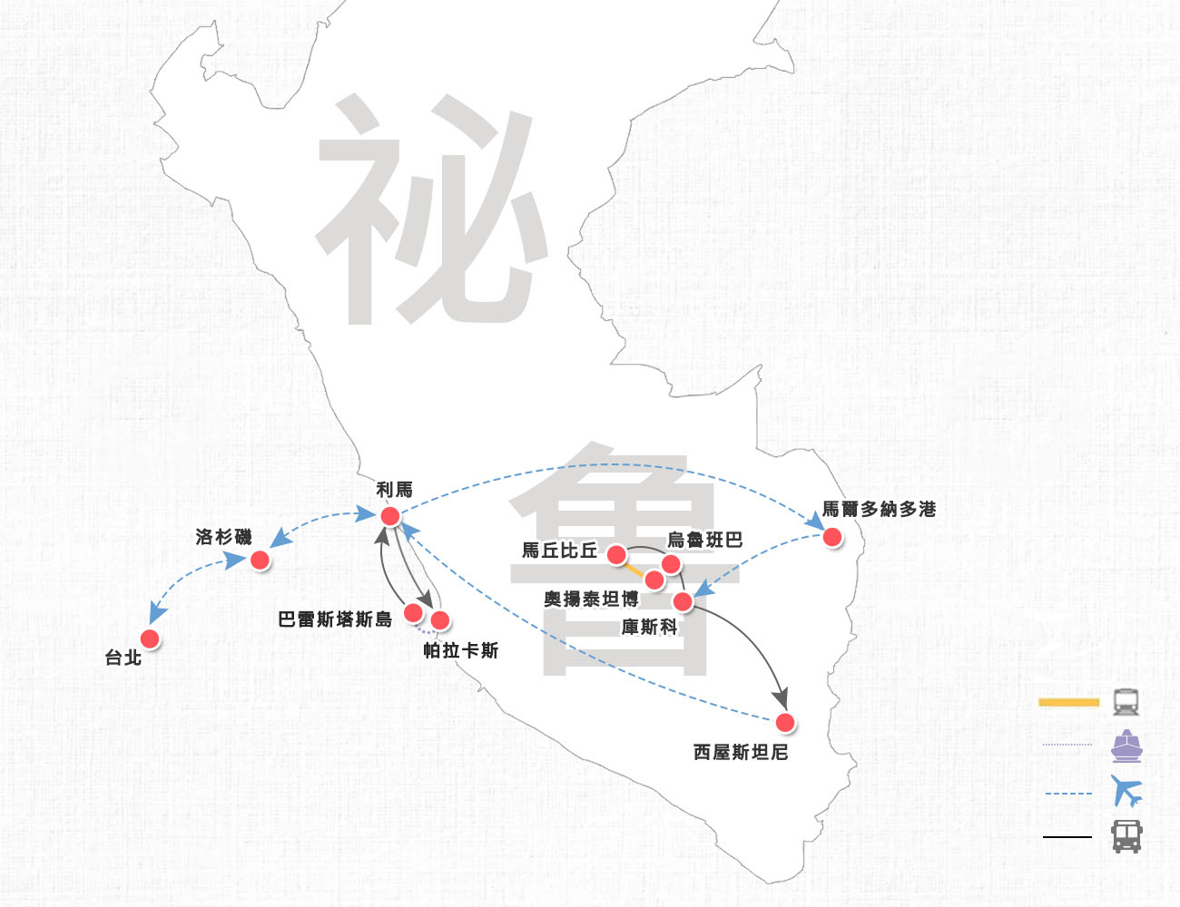 今日集合於桃園國際機場,搭乘豪華客機經國際換日線於當日抵達美國西岸,辦理轉機手續後續飛往秘魯首都『利馬』。充滿古文明文化,神秘又豐富的南美洲古文明就馬上要展開囉。秘魯~時空交錯的文明,在這充滿想像空間的神秘大地,璀璨數千年的古印加文明在此生根茁壯,也在此沉落消失,留下了豐富多彩、奇詭奧妙的圖騰、文物和鬼斧神工般的建築遺跡,其中還蘊藏了不少至今連科學家、考古學家也百思不得其解之謎...